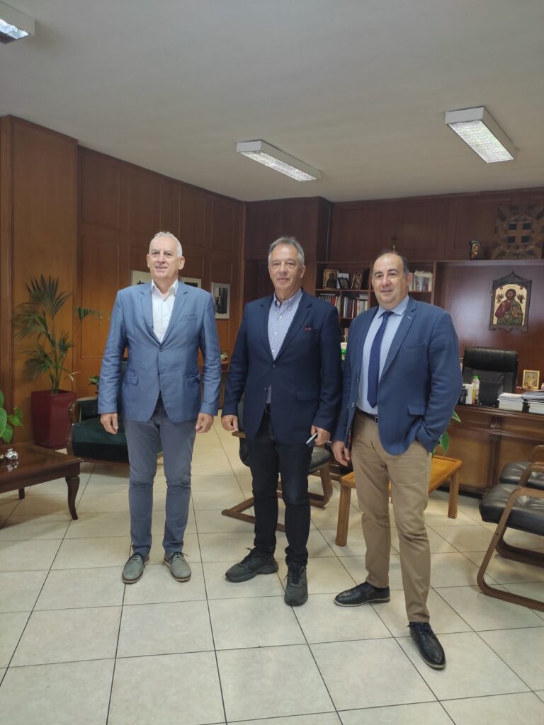 Η συνάντηση, που έγινε στο γραφείο του Αντιπεριφερειάρχη, είχε εθιμοτυπικό χαρακτήρα, αλλά οι τρεις άνδρες είχαν την ευκαιρία να συζητήσουν ζητήματα που αφορούν την καλύτερη λειτουργία των σχολικών μονάδων.
