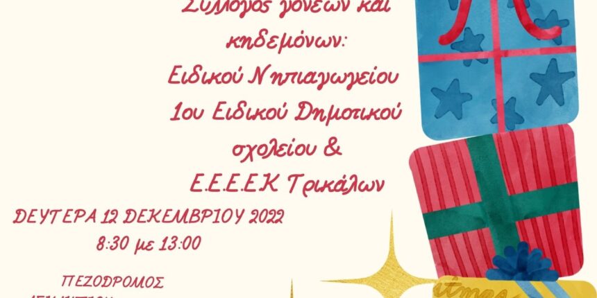 Τρικάλων, σας προσκαλεί στο Χριστουγεννιάτικο bazaar που θα διεξαχθεί τη Δευτέρα 12