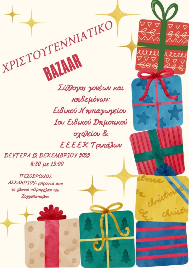 Τρικάλων, σας προσκαλεί στο Χριστουγεννιάτικο bazaar που θα διεξαχθεί τη Δευτέρα 12