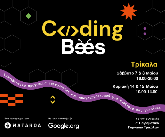 Το Coding Bees θα πραγματοποιηθεί σε 6 πόλεις της Ελλάδας (Καλαμάτα, Τρίκαλα, Ηράκλειο, Κοζάνη, Ξάνθη και Χαλκίδα).