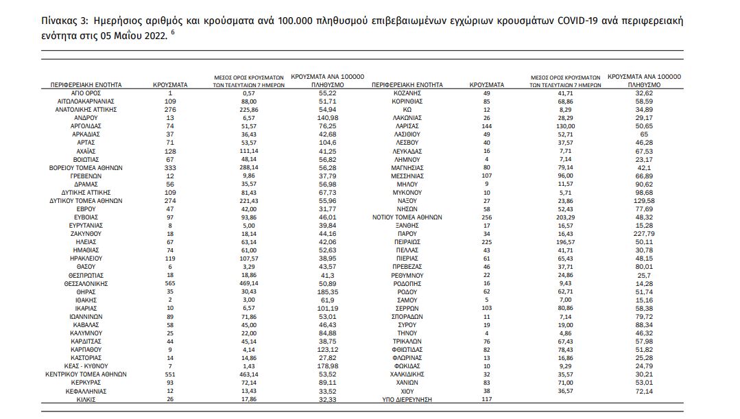Το τελευταίο 24ωρο επιβεβαιώθηκαν 5.650 κρούσματα κορονοϊού, όπως ανακοίνωσε ο ΕΟΔΥ την Τετάρτη. Από αυτά, τα πέντε είναι εισαγόμενα.Στην Π.Ε Τρικάλων σήμερ ανακοινώθηκαν 76 κρούσματα