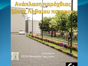 - Ανάπλαση πεζοδρομίων δεξιά και αριστερά της παραποτάμιας ζώνης