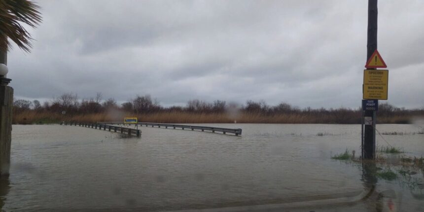 Ο όγκος του νερού ήταν τέτοιος που η ράμπα από τα Μεσάγκαλα για την παραλία της Κουλούρας καλύφθηκε μέχρι πάνω! Δείτε φωτογραφία: