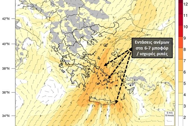 Σύμφωνα με τα προγνωστικά στοιχεία του Εθνικού Αστεροσκοπείου Αθηνών / meteo.gr, το Σάββατο 14/08 οι εντάσεις των βορείων ανέμων στο Αιγαίο θα φτάσουν τα 6 και τοπικά 7 μποφόρ, όπως παρουσιάζεται στον Χάρτη 1, ο οποίος ακολουθεί.