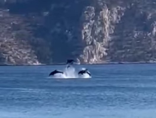 Όσοι βρίσκονταν εκεί δεν έκρυψαν τον ενθουσιασμό τους και άρχισαν να απαθανατίζουν τον εκπληκτικό “χορό” τους. Υπήρχαν μάλιστα και εκείνοι που δεν δίστασαν να βουτήξουν προκειμένου να βρεθούν κοντά στα δελφίνια.