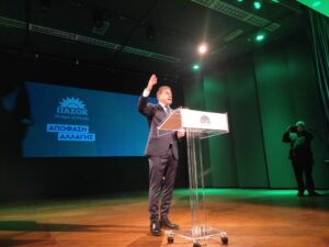 Ο ίδιος στην ομιλία του ζήτησε την ενδυνάμωση του ΠΑΣΟΚ με την ψήφο των πολιτών έτσι ώστε την επόμενη μέρα με κεντρικό σύνθημα απόφαση αλλαγής.