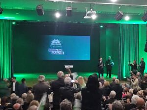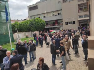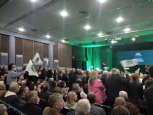 Από νωρίς τόσο στον εσωτερικό όσο και στον εξωτερικό χώρου του Πνευματικού Κέντρου συγκεντρώθηκαν φίλοι και υποστηρικτές της υποψηφότητας του κ. Οικονόμου.