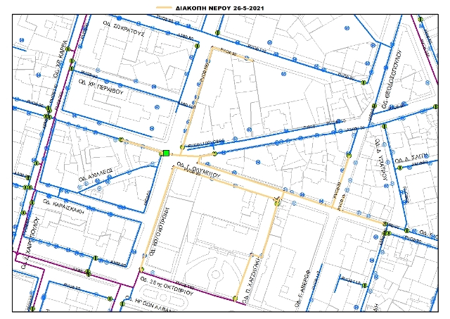 Από την υπηρεσία υδρεύσεως της Δ.Ε.Υ.Α.Τ. ανακοινώνεται ότι αύριο Τετάρτη 26/5/2021 λόγω επισκευής αγωγού ύδρευσης, θα υπάρχει διακοπή νερού στην οδό Κολοκοτρώνη από το ύψος της οδού 28ης Οκτωβρίου έως το ύψος της οδού Σωκράτους, στην οδό Χατζηγάκη από το ύψος της οδού 28ης Οκτωβρίου έως το ύψος της οδού Ολυμπίου, στην οδό Αβέρωφ από το ύψος της οδού Ολυμπίου έως το ύψος της οδού Αχιλλέως, στην οδό Ολυμπίου από το ύψος της οδού Κολοκοτρώνη έως το ύψος της οδού Κοπάδη, στην οδό Σωκράτους από το ύψος της οδού Κολοκοτρώνη έως το ύψος της οδού Θεοδοσοπούλου, και τέλος στην οδό Διάκου από το ύψος της οδού Κολοκοτρώνη έως το ύψος της οδού Καρρά η οποία θα διαρκέσει από τις 09:00 π.μ. έως τις 11:00 π.μ.