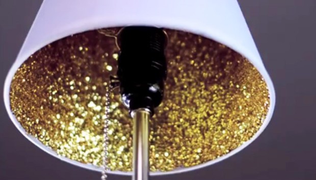 - Περάστε μια δεύτερη στρώση κόλλας σε όλη την επιφάνεια του φωτιστικού και καλύψτε την εκ νέου με χρυσόσκονη. Ανακινείστε το καλά ώστε να φύγει όση περισσεύει και μετά αφήστε το να στεγνώσει για 2 ώρες προτού το κρεμάσετε πίσω στη θέση του!