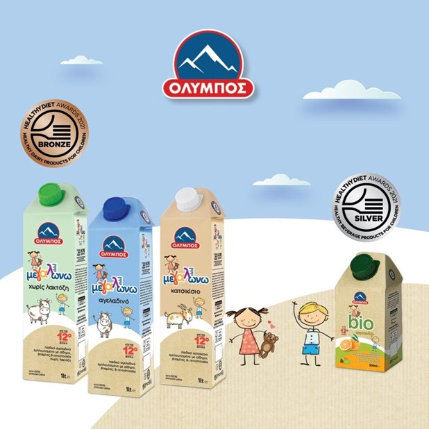 – ο φρεσκοστυμμένος χυμός πορτοκαλιού για παιδιά ΟΛΥΜΠΟΣ bio (SILVER στην κατηγορία Healthy Beverage Products for Children) και – τα παιδικά ροφήματα γάλακτος ΟΛΥΜΠΟΣ μεγαλώνω (BRONZE στην κατηγορία Healthy Dairy Products for Children).