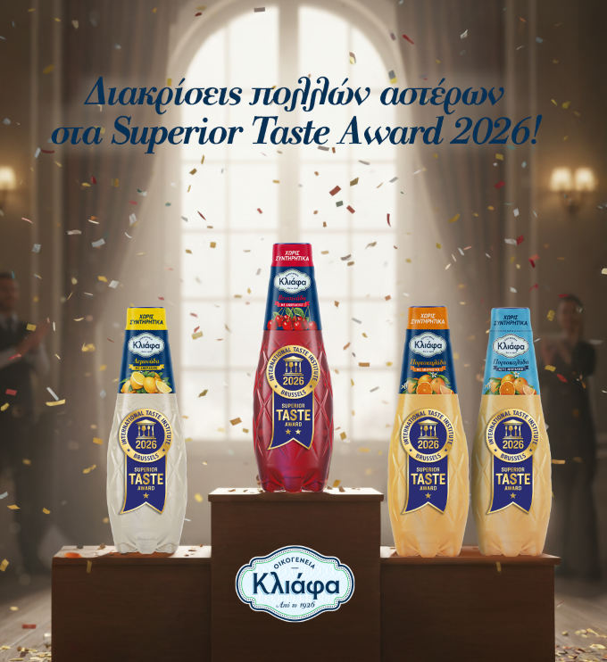 Διακρίσεις πολλών αστέρων για τα αναψυκτικά Κλιάφα στα Superior Taste Award 2026
