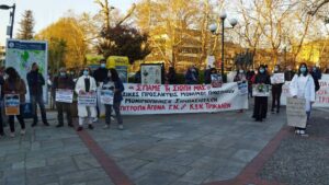Διαμαρτυρία μετά μουσικής από την Επιτροπή Αγώνα Εργαζομένων Νοσοκομείου Τρικάλων