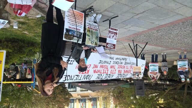 Στην κινητοποίηση απεύθυναν χαιρετισμό οι : Ματίνα Κούκια , πρόεδρος του Συλλόγου Εργαζομέμων στο Γεν. Νοσοκ. Τρικάλων, η Ουρανία Παπαζεύκου , αντιπρόεδρος της ΕΛΜΕΤ , ο Γιώργος Τσιάκαλος πρόεδρος του Συλλόγου Δασκάλων &Νηπιαγωγών, η Κων/να Παπή , πρόεδρος του Σωματείου Ιδιωτικών Υπαλλήλων , η Λίνα Καρέτσου , γραμματέας του παραρτήματος Τρικάλων του ΠΜΣ,  ενώ η κεντρική ομιλία έγινε από το Βάιο Τάσιο πρόεδρο της ΕΙΝΚΥΤ , ο οποίος τόνισε χαρακτηριστικά: