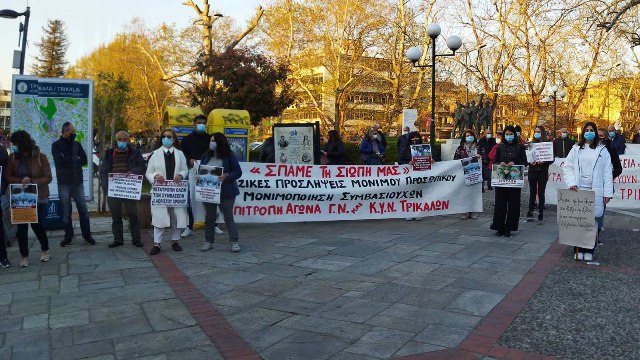 Διαμαρτυρία μετά μουσικής από την Επιτροπή Αγώνα Εργαζομένων Νοσοκομείου Τρικάλων