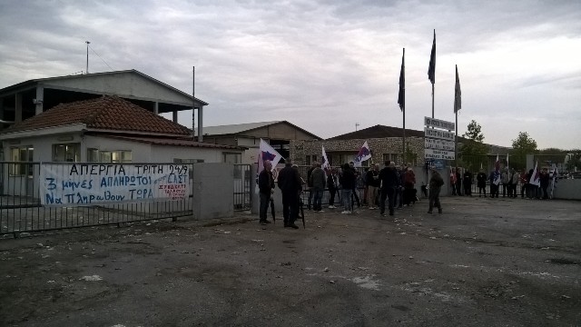 Διαμαρτυρία του Συνδικάτου Γάλακτος Τροφίμων και Ποτών Τρικάλων την Τρίτη 24 Σεπτέμβρη , ημέρα της Απεργίας, στα κεντρικά γραφεία της ΕΑΣ Τρικάλων με αίτημα να πληρώνουν άμεσα τα δεδουλευμένα που οφείλει η διοίκηση της ΕΑΣΤ στους εργαζόμενους των επιχειρήσεων της. Η διοίκηση ωφείλει στους εργαζόμενους στις επιχειρήσεις της ΕΑΣΤ τα δεδουλευμένα 3 μηνών