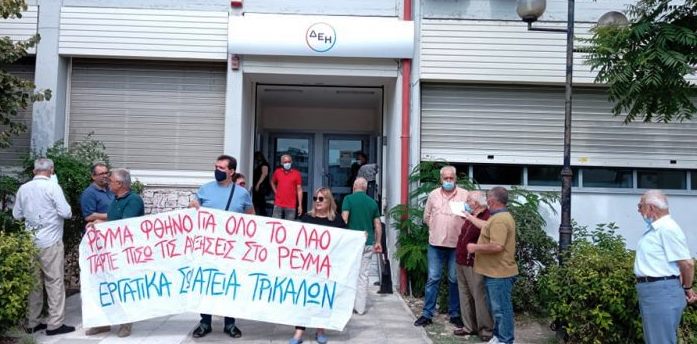 Παράσταση διαμαρτυρίας πραγματοποίησαν το μεσημέρι της Δευτέρας εκπρόσωποιΕργατικών Σωματείωνέξω από τα γραφεία της ΔΕΗ στα Τρίκαλα.