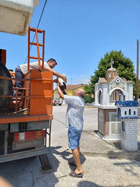 Οι μικρές ιστορίες της καθημερινότητας που ομορφαίνουν τη ζωή μας. Τρικαλινός από το χωριό Αγιοι Απόστολοι, δίπλα από τα Τρίκαλα, ο κ. Καραθανάσης, την Κυριακή διαπίστωσε ότι νεοσσός πελαργός είχε πέσει από τη φωλιά του. Τον περιμάζεψε και τη Δευτέρα 5 Ιουλίου τηλεφώνησε στο αρμόδιο Γραφείο Εξυπηρέτησης Πολιτών («20000») του Δήμου Τρικκαίων. Αμεσα ενημερώθηκε η Υπηρεσία Πρασίνου, που ειδοποίησε και τον ΔΕΔΗΕ, καθώς αμφότερες οι υπηρεσίες διαθέτουν οχήματα με σκάλες για μεγάλο ύψος. Ο προϊστάμενος της Υπηρεσίας του Δήμου, Σωτήρης Χελιδώνης συνεργάστηκε με τον πρόεδρο ενός άλλου χωριού του Δήμου Τρικκαίων, τον Γιάννη Παπαχρήστο της Ράξας, ο οποίος εργάζεται για τον ΔΕΔΗΕ και ήταν αυτός που τοποθέτησε τον νεοσσό ξανά στη φωλιά του, στην κολώνα της ΔΕΗ, δίπλα στο αδελφάκι του.