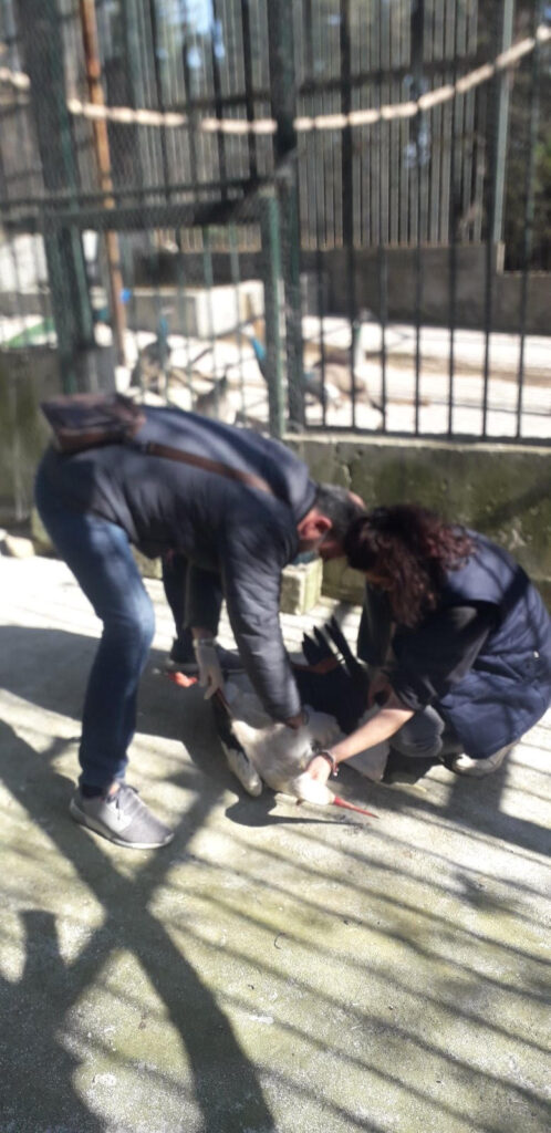 Ο πελαργός μεταφέρθηκε στο ζωολογικό κήπο και τον περιέθαλψε ο κτηνίατρος που συνεργάζεται με τον Δήμο.
