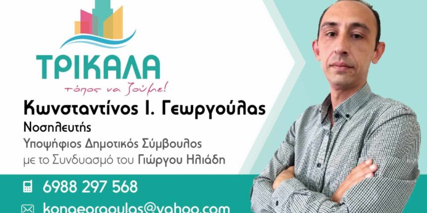 Προσφεροντας από την θέση του επαγγελματία υγείας όλα αυτά τα χρόνια στον συνάνθρωπο αποφασίζω να προσφέρω και στον δήμο μας από την θέση του δημοτικού συμβούλου,θέση για την οποία ζητώ την στήριξη σας με τον συνδιασμό “Τρίκαλα τόπος να ζούμε” με υποψήφιο δήμαρχο τον Γιώργο Ηλιαδη.