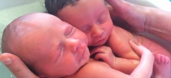 Τα δίδυμα αδελφάκια, ένα αγοράκι και ένα κοριτσάκι, νομίζουν ότι βρίσκονται ακόμα στην κοιλιά της