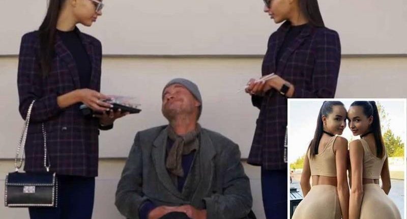 Το βίντεο δείχνει τις 24χρονες Ρωσίδες, που αυτοορίζονται ως influencers, να συναντούν έναν άστεγο σε αναπηρικό αμαξίδιο. Τότε, η μία λέει: «Τον καημένο, πιθανότατα δεν έχει φάει εδώ και καιρό». Στη συνέχεια, τηλεφωνούν σε εστιατόριο και λίγο μετά ένας ντελιβεράς κάνει την εμφάνισή του με ένα πακέτο σούσι και οι καλλίγραμμες δίδυμες ταΐζουν στο στόμα τον άστεγο με τις ιαπωνικές σπεσιαλιτέ.