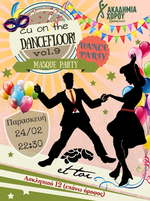 Την Παρασκευή 24 Φεβρουαρίου και ώρα 22.30 στον όμορφο χώρο του Et Toi (επάνω όροφος ) η Ακαδημία Χορού Τρικάλων ετοιμάζει το πιο ξέφρενο πάρτι για μεγάλα …παιδιά σε ρυθμούς αποκριάτικους! Ελάτε να χορέψουμε όλοι μαζί τα αγαπημένα τραγούδια των Αποκριών αλλά και σε αγαπημένους ρυθμούς latin salsa bachata kizomba κτλ.