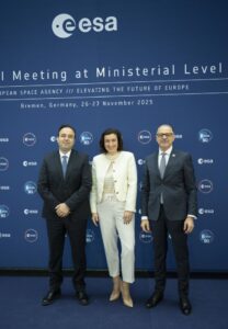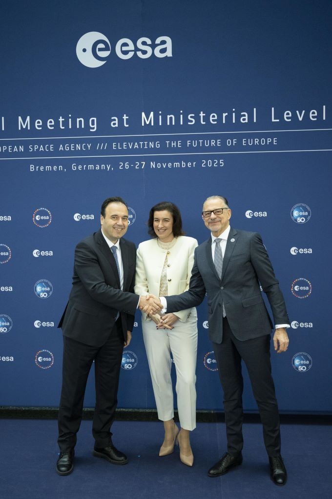 «Το διάστημα δεν είναι πλέον μακριά. Διαμορφώνει την ασφάλειά μας. Οδηγεί την οικονομία. Υποστηρίζει την καθημερινή ζωή. Αποτελεί στρατηγική προτεραιότητα για την Ευρώπη και είναι για την Ελλάδα επένδυση για την ανθεκτικότητα, την καινοτομία, τη μακροπρόθεσμη ευημερία», τόνισε ο Υπουργός Ψηφιακής Διακυβέρνησης, Δημήτρης Παπαστεργίου κατά την τοποθέτησή του, σήμερα 26 Νοεμβρίου, στο Συμβούλιο Υπουργών του Ευρωπαϊκού Οργανισμού Διαστήματος (ESA) στη Βρέμη της Γερμανίας. Τον Υπουργό συνόδευσαν ο Γενικός Γραμματέας Τηλεπικοινωνιών και Ταχυδρομείων, Κωνσταντίνος Καράντζαλος και ο Πρόεδρος του Ελληνικού Κέντρου Διαστήματος (ΕΛΚΕΔ), Εμμανουήλ Ράμμος.