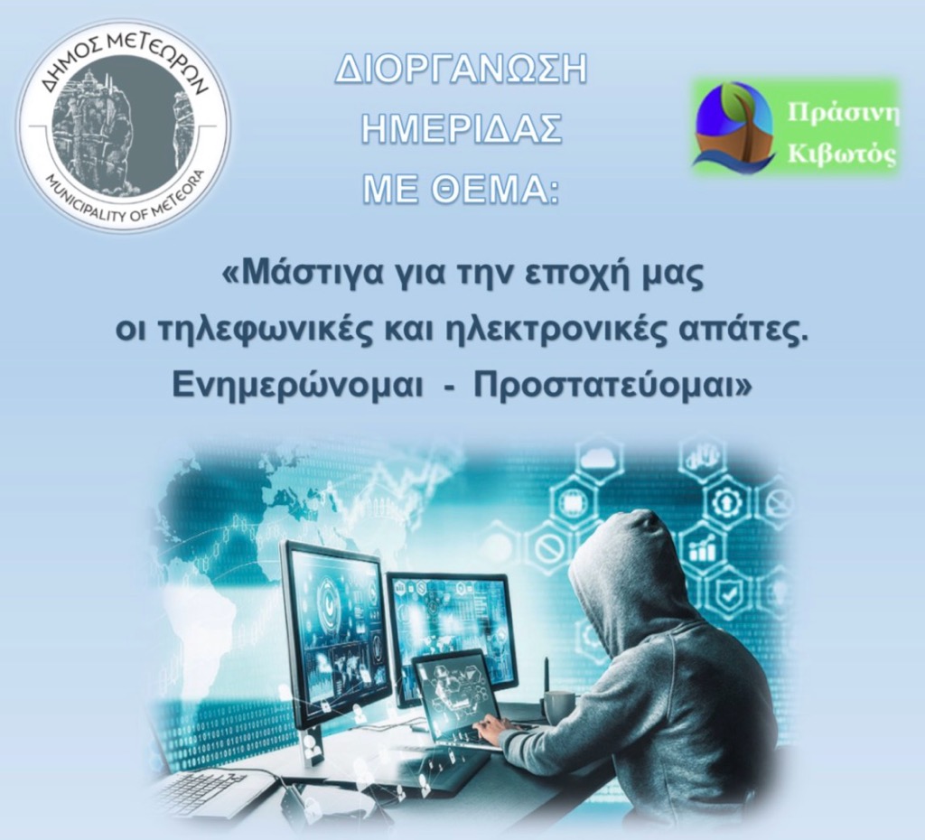Δήμος Μετεώρων: Ημερίδα με θέμα «Μάστιγα για την εποχή μας οι τηλεφωνικές και ηλεκτρονικές απάτες. Ενημερώνομαι – Προστατεύομαι»