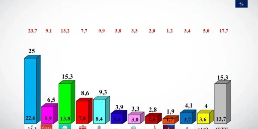 trikaladay.gr / Ελλάδα / Δημοσκόπηση ALCO: Άνοδος για ΝΔ και ΠΑΣΟΚ – Στην 5η θέση ο ΣΥΡΙΖΑ με 6,5%