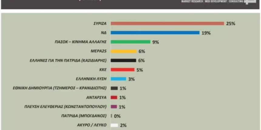 Προβάδισμα έξι μονάδων καταγράφει ο ΣΥΡΙΖΑ έναντι της Νέας Δημοκρατίας (25% έναντι 19%), όπως προέκυψε από την πρώτη δημοσκόπηση που διενεργήθηκε, αποκλειστικά, σε δείγμα νέων ανδρών και γυναικών, ηλικίας 17 έως 34 ετών, διενήργησε η εταιρεία Palmos Analysis, για την τηλεόραση ATTICA.