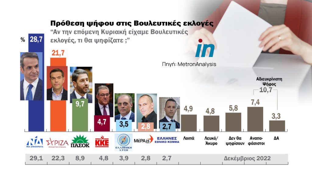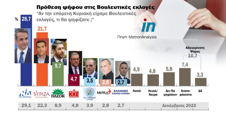 Η αδιευκρίνιστη ψήφος είναι στο 10,7%.