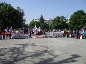 Δυναμική σε παλμό και με σχετικά μεγάλη συμμετοχή πραγματοποιήθηκε σήμερα το πρωί η απεργιασκ΄’η συγκέντρωσηξ του ΠΑΜΕ στην κεντρική πλατεία Τρικάλων.