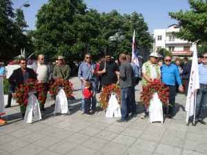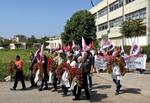 Μετά τις ομιλίες έγινε πορείς στην πλατεία Εργάτη και κατατέθηκαν στεφάνια στο μνημείο που βρίσκεται εκεί.
