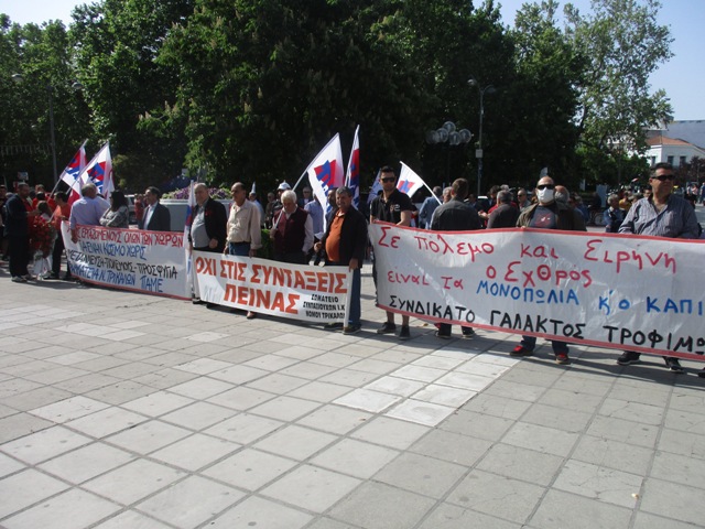 Δυναμική σε παλμό και με σχετικά μεγάλη συμμετοχή πραγματοποιήθηκε σήμερα το πρωί η απεργιασκ΄’η συγκέντρωσηξ του ΠΑΜΕ στην κεντρική πλατεία Τρικάλων.