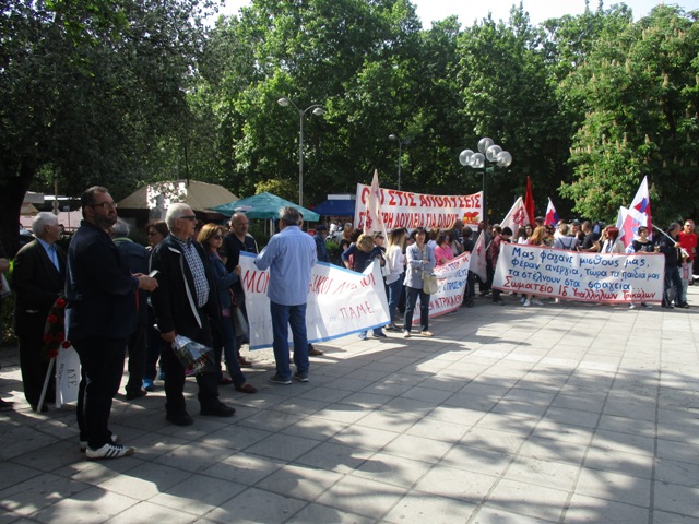 Μετά τις ομιλίες έγινε πορείς στην πλατεία Εργάτη και κατατέθηκαν στεφάνια στο μνημείο που βρίσκεται εκεί.