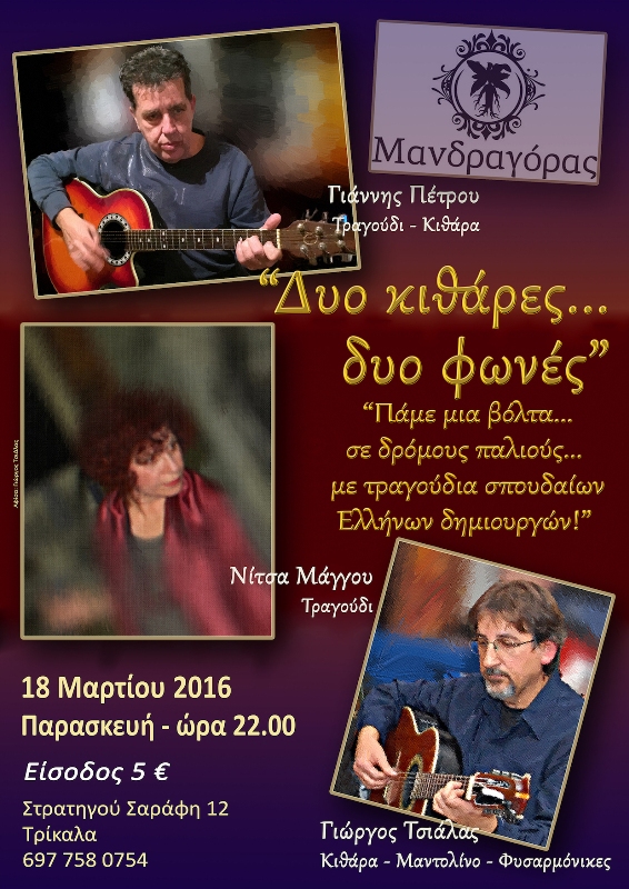 Παρασκευή 18 Μαρτίου 2016 και ώρα 22.00 στο Μουσικό Στέκι “Μανδραγόρας”.