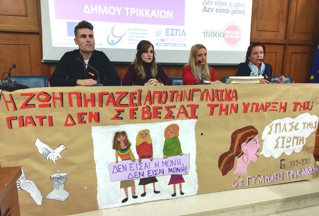 Ισχυρό μήνυμα από τα Τρίκαλα ενάντια στη βία κατά των γυναικών. Ανήμερα της Παγκόσμιας Ημέρας, στις 25 Νοεμβρίου 2019, ο Δήμος Τρικκαίων και το Κέντρο Συμβουλευτικής Υποστήριξης Γυναικών Θυμάτων Βίας του Δήμου, ολοκλήρωσαν τις τριήμερες εκδηλώσεις με τη συνδρομών των μικρών σε ηλικία πολιτών: μαθητών/τριών από τη Γ τάξη του 6ου Γυμνασίου Τρικάλων, που παρουσίασαν σε δημοσιογράφους και τρικαλινούς/ες, τα όσα κατανόησαν και βίωσαν, μετά τη συνεργασία τους με το Κέντρο Συμβουλευτικής αποκλειστικά με θέμα τη βία κατά γυναικών.