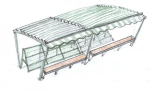 – Ο συνολικός χώρος που θα καταλαμβάνουν οι πάγκοι κάθετα στον άξονα του πεζοδρομίου, συμπεριλαμβανομένου του διαδρόμου πλάτους 75 εκατοστών μεταξύ του ορίου του πρασίνου και των πάγκων για την κίνηση των παραγωγών, είναι συνολικά 2,00 μέτρα.