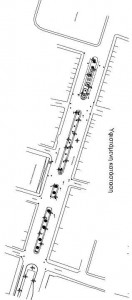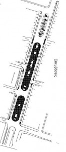 – Στον χώρο των νησίδων θα λαμβάνουν χώρα όλες οι δραστηριότητες της λαϊκής. Οι τραπεζόπαγκοι θα τοποθετούνται σε απόσταση 0,75 μέτρων από το όριο του πρασίνου και θα καταλαμβάνουν χώρο 1,25 πλάτος επί 3,00 μέτρα μήκος. Θα τοποθετούνται κατά μήκος σε σειρά ανά δύο, πλην κάποιων μεμονωμένων περιπτώσεων για την εξασφάλιση όσο το δυνατόν περισσότερων πάγκων, αφήνοντας στη συνέχεια κενό 0,50 μέτρων για τη διέλευση των παραγωγών. Με αυτή τη διάταξη υπολογίζεται να τοποθετηθούν συνολικά 84 τραπεζόπαγκοι.