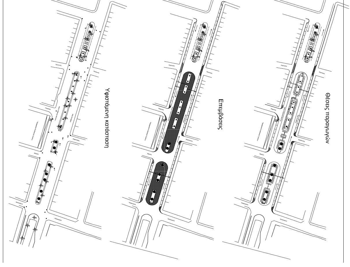 – Συγχώνευση δύο νησίδων και η επέκταση της πλακόστρωσης και των τριών νησίδων δημιουργώντας πεζοδρόμιο πλάτους 5,20 μέτρων.