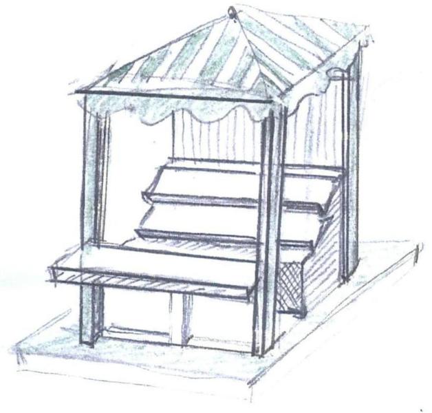 δ) Υπολογισμό για τη χωροθέτηση των πάγκων των παραγωγών, εμβαδόν διαστάσεων 1,25 μέτρα επί 3,00 μέτρα, εξασφαλίζοντας και διάδρομο πλάτους 0,75 μέτρων παράλληλα στη μεγάλη διάσταση αυτών για χρήση των παραγωγών.