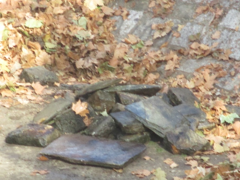 Πρόκειται για πέτρες και συγκεκριμένα αρκετές πλάκες που είχαν αποκολληθεί από τον τοιχίο του ποταμού και κάποιοι τις πήραν και τις έριξαν στο ποτάμι.