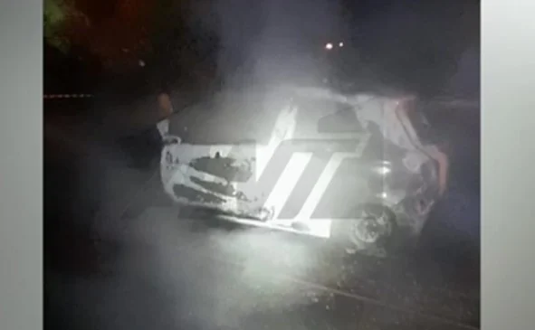 Το κεντρικό δελτίο ειδήσεων του ΑΝΤ1 μετέδωσε φωτογραφία από το καμένο αυτοκίνητο: