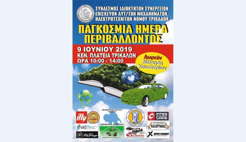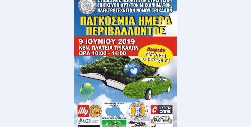 Με αφορμή λοιπόν την Παγκόσμια Ημέρα Περιβάλλοντος ο Σύνδεσμος Ιδιοκτητών Συνεργείων Επισκευών Αυτ/των Μηχανημάτων, Ηλεκτροτεχνιτών Ν. Τρικάλων, διοργανώνει εκδήλωση την ερχόμενη Κυριακή 9 Ιουνίου και ώρες από 10:00πμ έως 2:00μμ, στην κεντρική πλατεία στα Τρίκαλα, κατά την οποία θα πραγματοποιείται δωρεάν μέτρηση καυσαερίων σε κάθε ενδιαφερόμενο που θα παραβρεθεί!