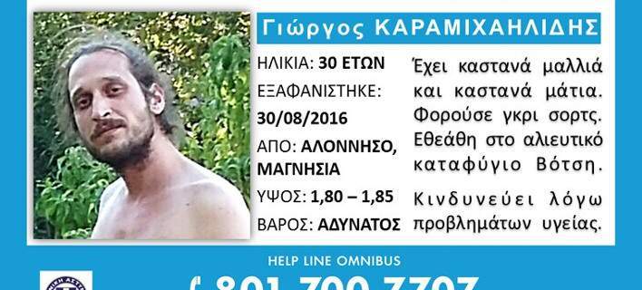 Έκκληση σε όποιον γνωρίζει κάτι για το παιδί της να μιλήσει, απευθύνει η μητέρα του 30χρονου Γιώργου Καραμιχαηλίδη που εξαφανίστηκε από την Αλόννησο στις 30 Αυγούστου και αγνοείται μέχρι σήμερα.