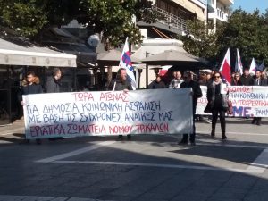 Μετά τις ομιλίες οι συγκεντρωθέντες πραγματοποίησαν πορεία στην Ασκληπιού και σε κεντρικούς δρόμους της πόλης.