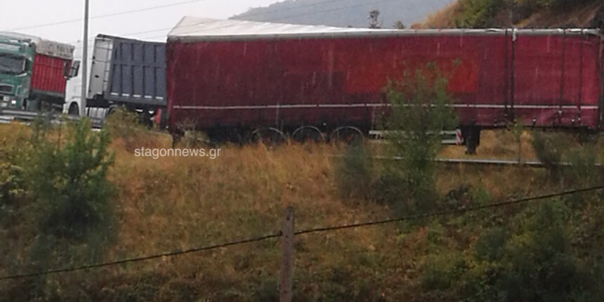 Ε.Ο Τρικάλων – Ιωαννίνων: Νταλίκα έφυγε από την πορεία της και σταμάτησε λίγα μέτρα πριν από γκρεμό