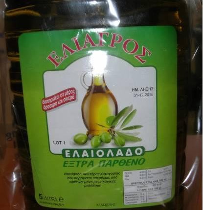 Επίσης, διαπιστώθηκε η ύπαρξη κενών λιθογραφημένων δοχείων που έφεραν επισήμανση «εξαιρετικό παρθένο ελαιόλαδο» σε συσκευασίες 3, 4 και 5 λίτρων, καθώς και κενές πλαστικές συσκευασίες 1 και 5 λίτρων για συσκευασία ελαίων, με τα αντίστοιχα καπάκια. Παράλληλα εντοπίστηκαν τυποποιημένα προϊόντα που έφεραν επισήμανση «εξαιρετικό παρθένο ελαιόλαδο» με τις εμπορικές επωνυμίες α) «ΕΛΙΑΓΡΟΣ» και «BEVELINI», τα οποία, από προηγούμενες χημικές αναλύσεις, έχει διαπιστωθεί ότι είναι νοθευμένα με σπορέλαιο σε πολύ μεγάλο ποσοστό, τεχνητώς χρωματισμένο και β) «ΦΑΡΟΣ» και «ΛΙΑΤΙΚΟ», στα οποία πραγματοποιήθηκε δειγματοληψία και όπως διαπιστώθηκε, από τη Χημική Υπηρεσία Κεντρικής Μακεδονίας που διεξήγαγε τις αναλύσεις, ενώ επισημαίνονται ως εξαιρετικά παρθένα ελαιόλαδα, στην πραγματικότητα είναι επίσης νοθευμένα με πολύ μεγάλο ποσοστό σπορελαίου, τεχνητώς χρωματισμένου.