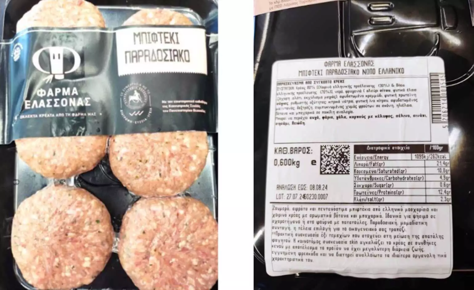 Ο φορέας προέβη σε δειγματοληψία νωπού παρασκευάσματος κρέατος (χοιρινό-βοδινό) με τα στοιχεία: «ΜΠΙΦΤΕΚΙ ΠΑΡΑΔΟΣΙΑΚΟ ΝΩΠΟ» βάρους 0,600 κιλών, με ημερομηνία παρασκευής: 27/07/2024 LOT 27.07.2024 60230007 και ημερομηνία ανάλωσης έως: 08/08/2024.