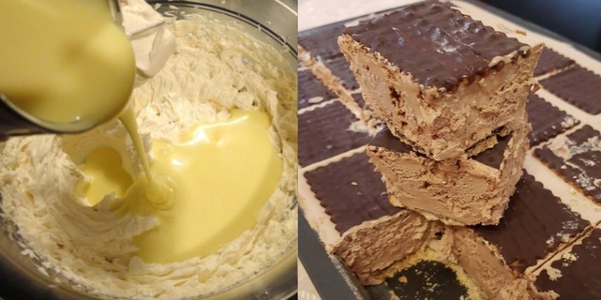 Όταν είναι έτοιμο κόβουμε το παγωτό με ένα μαχαίρι στα χωρίσματα των μπισκότων.